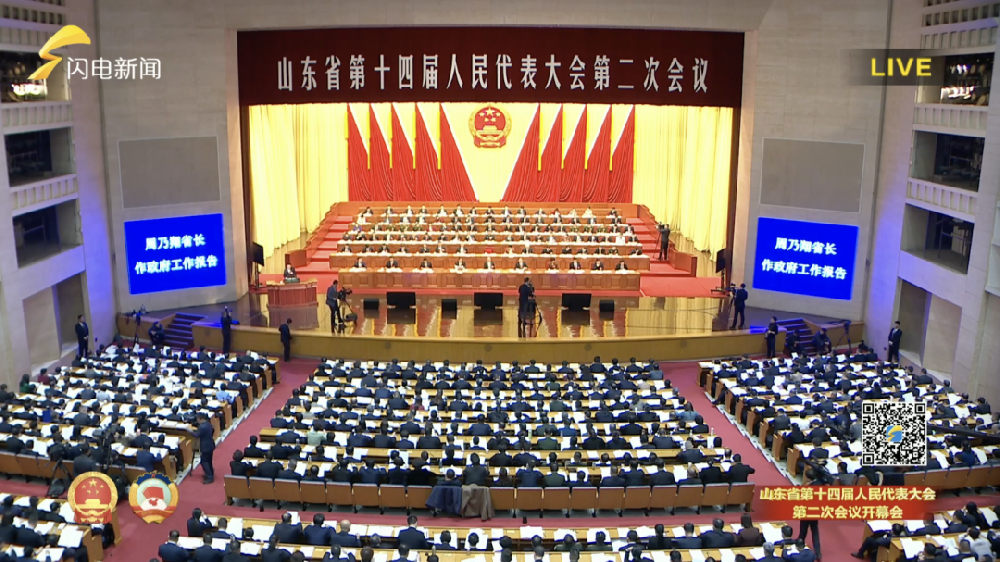 1月22日上午,山东省第十四届人民代表大会第二次会议开幕,省长周乃翔作政府工作报告。
